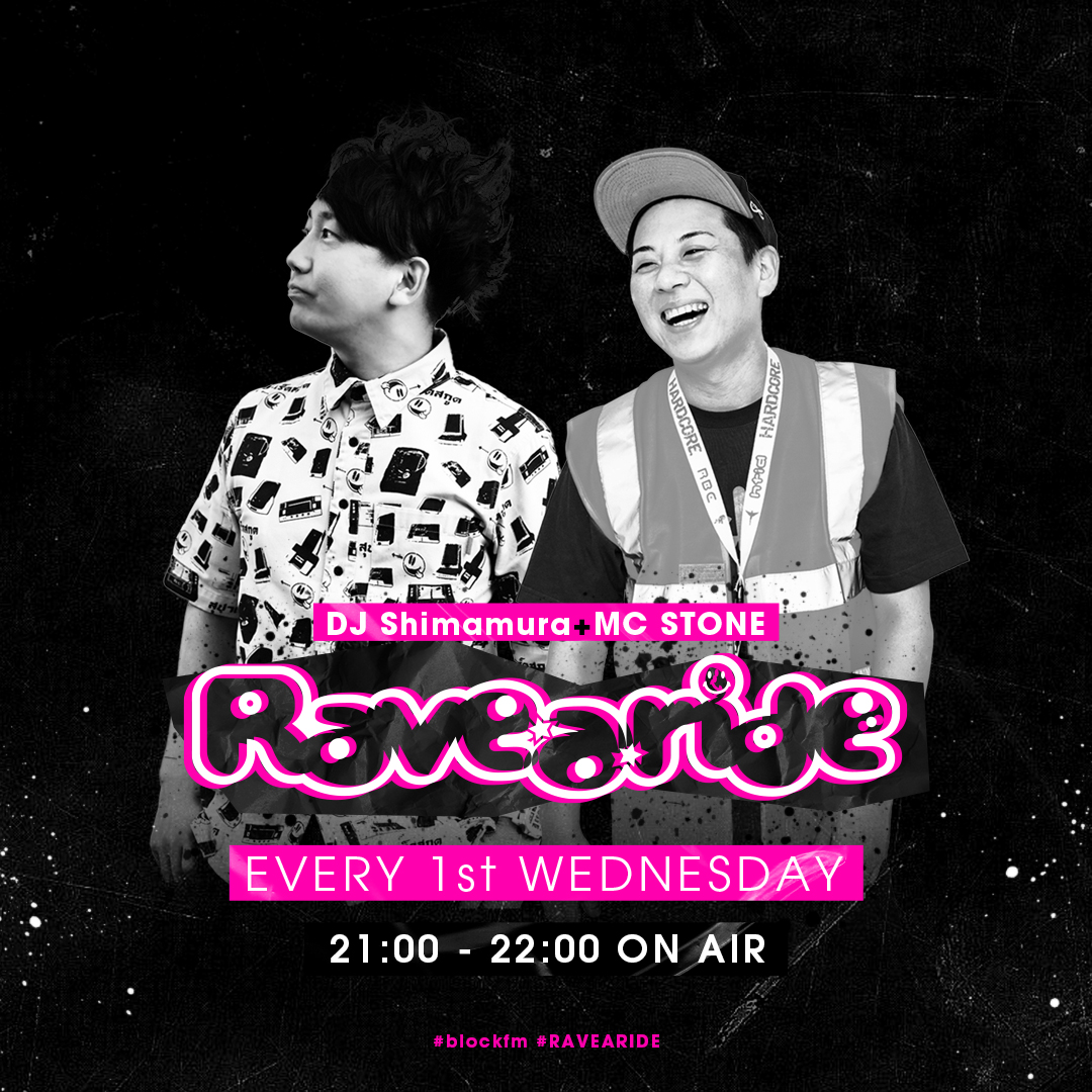 DJ Shimamura & MC STONEがナビゲートするblock.fmのHARDCORE RAVE専門チャンネル「RAVE-A-RIDE」が2017年2月より毎月第1、第3木曜20時〜21時の放送にボリュームアップしました!今までよりもスピーディーに最新の高速レイヴサウンドや国内外の最新HARDCOREトピックスをお届けします!