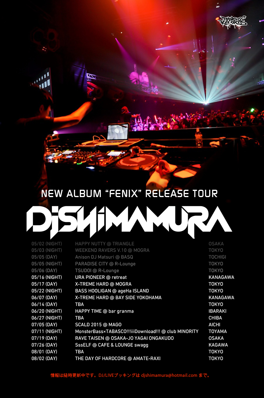 先日、渋谷clubasisaで開催されました「TOKYO HARD GROOVE SESSION '15 -SPRING-」での我々の模様をYouTubeにアップしました!3台のカメラを回して収録した映像です!今回の新作アルバム「FENIX」のトラックもいち早くドロップしています。是非ご覧ください! Album "FENIX" RELEASE TOUR START!!!!!!! アルバムリリースを記念したDJツアーが今週土曜の大阪「HAPPY NUTTY」を皮切りにスタートします!DJ Shimamuraが全国を駆け巡ります!ぜひ会場に足をお運びください!